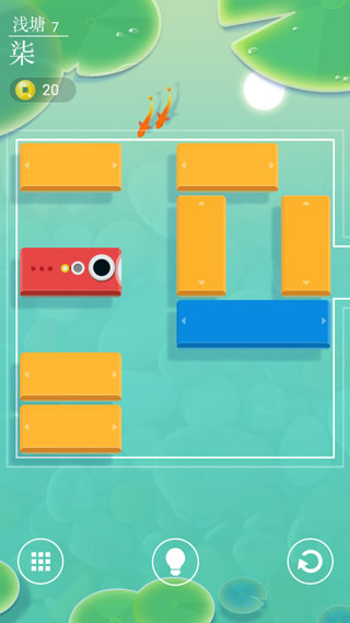 炎炎夏日,玩刺激的游戏容易心情烦躁,惊悚的游戏小心脏受不了。所以今天小编向大家推荐一款小清新的浅塘游戏,游戏玩法非常简单,有点类似于华容道,玩家只需要按照木块长度方向,移动小木块,终让小红鱼逃出困境就可以啦!小编非常喜欢这款游戏的界面,小清新的工笔画风格配上浅浅的水塘,随波摇曳的莲花,浅水中嬉戏的小鱼,远处的虫鸣,偶尔的蛙声,若有若无的蝉鸣顿时带给你丝丝凉意。另外,玩家在游戏中的过程中,还可以听到优美动听的小曲旋律,能够让人感受到心旷神怡。想体验的亲们,快来下载游玩吧!