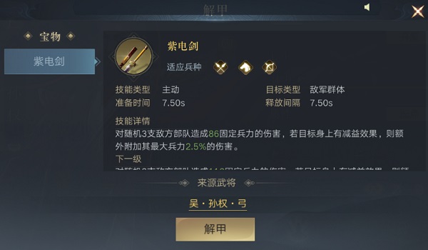 如果说到孙权的武器,或许大家首先想到的就是六柄名剑,其实在这种武器里面最出名的就是紫电。正是由于出现这样的情况,因此在设计孙权宝物的情况下,策划或许也已经想到了紫电剑。