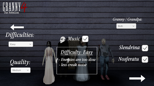 另外,恐怖奶奶4游戏内还有着多种难度可以选择,玩家可从简单到困难依次挑战通关,以此获得更好的游戏体验。你有信心在恐怖奶奶的抓捕下成功逃脱吗?感兴趣的朋友快来下载挑战吧!