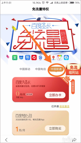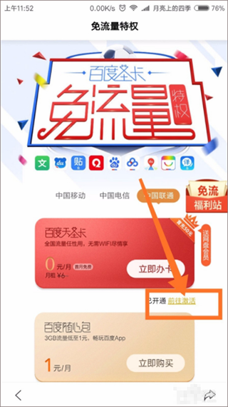 2、点击免流服务(请左右滑动这个模块,可以找到免流服务);