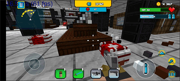 进入游戏后我们自带了一把枪,我们需要清理掉所有的守卫,当然我们的子弹并不是无限的,我们需要击杀敌人,他们消失后可能会掉了回血或者获得子弹的箱子,也有可能掉落他们的配枪,大家清理完所有的敌人就获胜了。