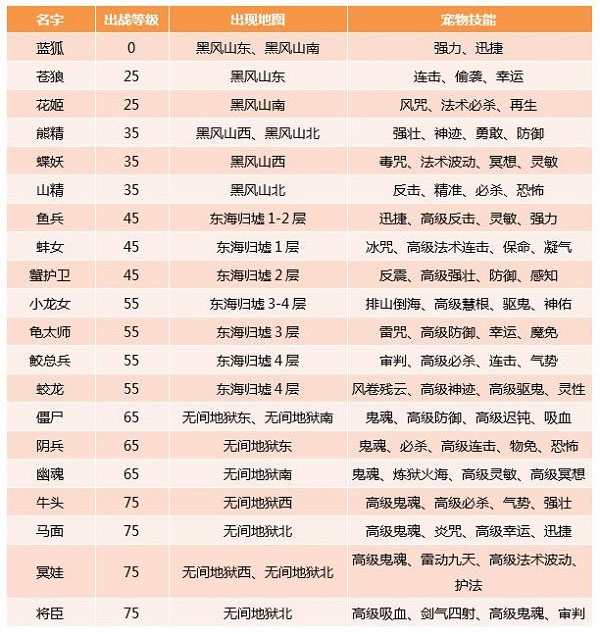 根据能力和获得难度的不同,宠物可以分为以下几类: