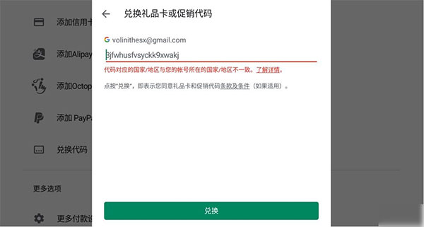 然后输入兑换码:3jfwhusfvsyckk9xwakj,并确认充值,这个是验证转区使用的,不是真的 充值。