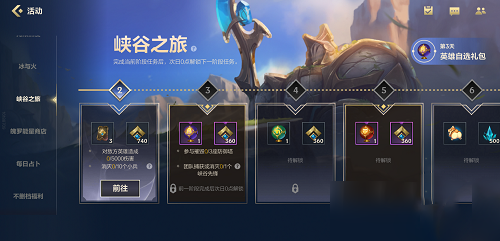 4、峡谷之旅的每日任务解锁时间为每日的零点解锁,完成了当天任务的玩家不要心急,只需要到零点就可以解锁下一天的任务啦。