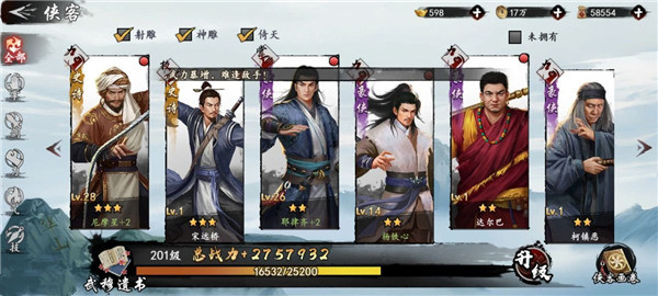 5、此外我们还可以提升全部侠客的总战力,通过升级武穆遗书,将可以获得全体侠客属性加成。随着武穆遗书等级的提升,我们可以获得战力加成也是越高。