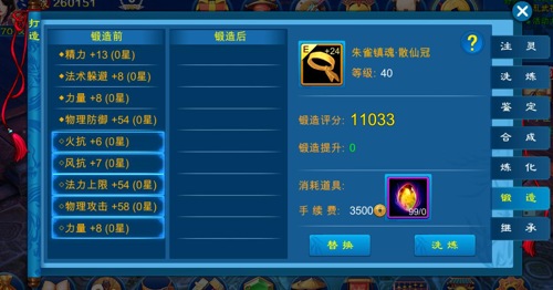 如果你对装备的附加属性中带有空心菱形的属性不满意,则可以使用精炼功能。每次需要花费一定数量的精炼石和铜钱。精炼时,带有实心菱形的属性不变,空心菱形属性中只有一条属性变化。用来追求完美属性,追求数值极限。