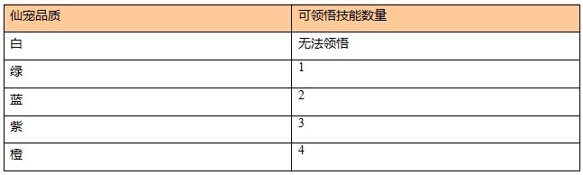 根据仙宠品质不同,可领悟技能的数量也不尽相同。领悟技能需要消耗一定的铜钱和灵气,新领悟的技能将随机生成,可以选择是否替换。