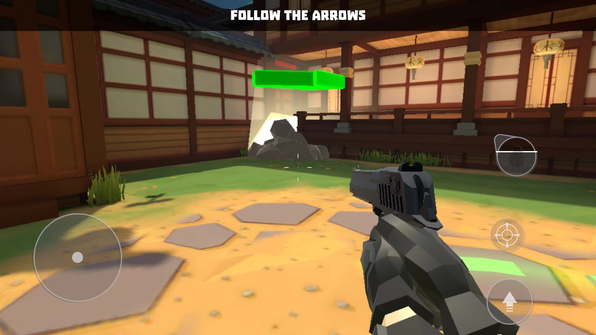 2、游戏控制分为左右两块区域,左边控制角色移动,右边控制视角,