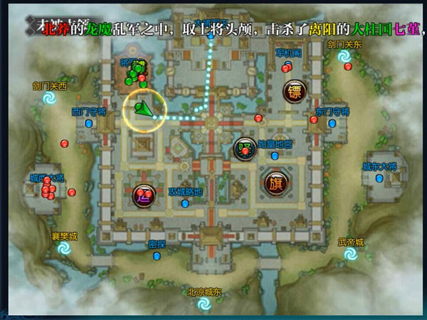 如果是从王城西进入,只需要召集大军,进攻王城城西大将(大将就在地图左边,很好找的哦),城西大将被攻克以后,接下来剑指西门守将,攻克以后,就可以进攻军机阁了。(嘘,我悄悄的分享一个小技巧,军机阁和西门守将距离实在太远了,跑到马儿都累死,何况千万大军,这样只需要有一个可以使用禁卫军令的国家官员,在西门守将快被攻下时先跑去军机阁,然后拉禁卫军令,就可以有先遣军啦)同样的道理,要是从王城东进入的话,就需要首先攻克城东大将,然后东门守将,接下来再是将军台。