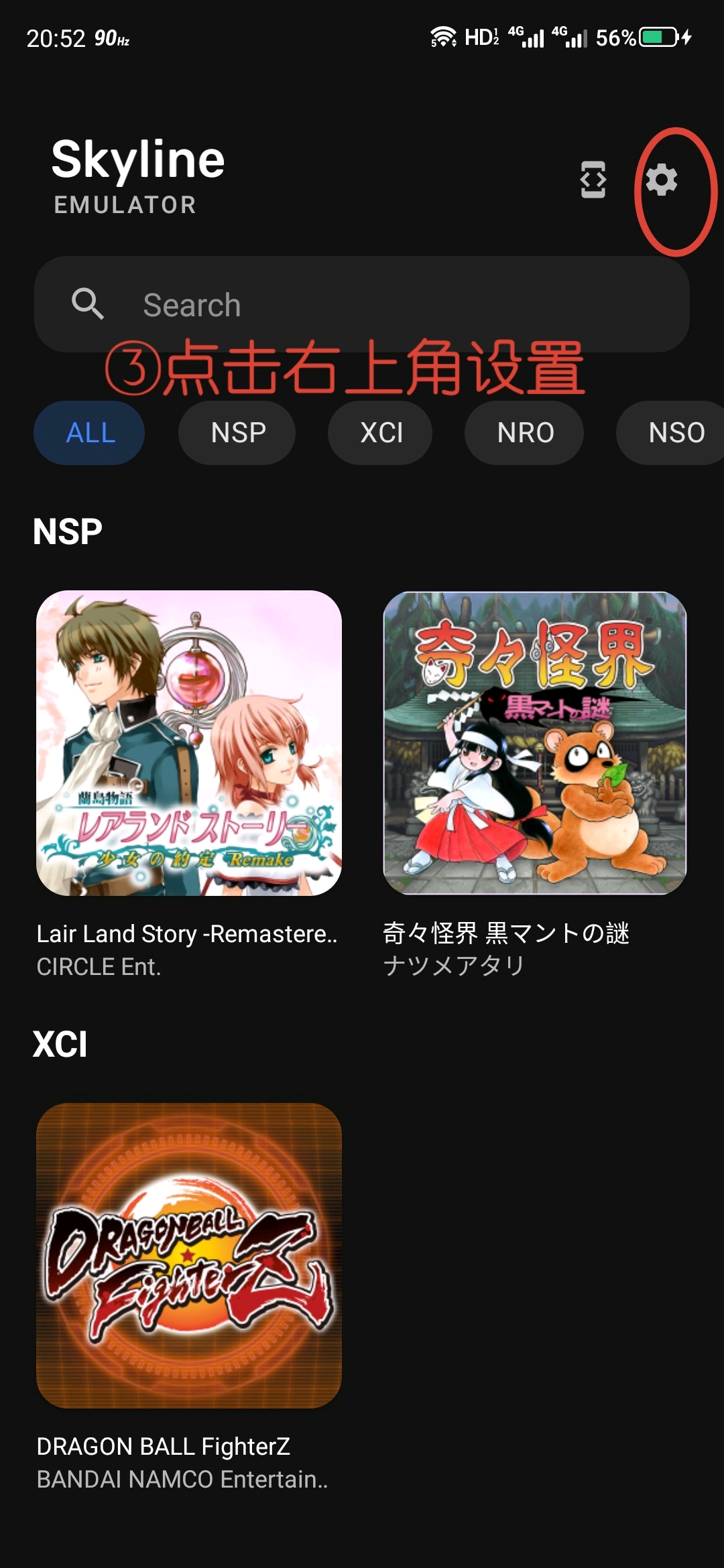 3、打开skyline模拟器,选择刚刚的放游戏rom的位置即可看到游戏。