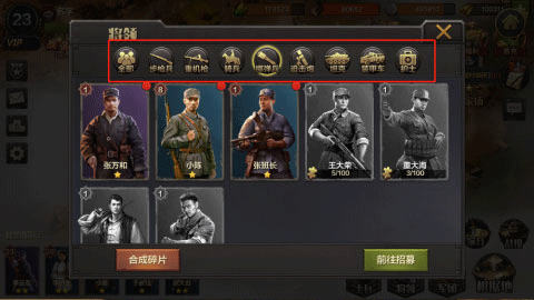 在《亮剑》人物卡牌中,一共分为5大兵种类型:机枪,掷弹,步枪,迫击以及特勤