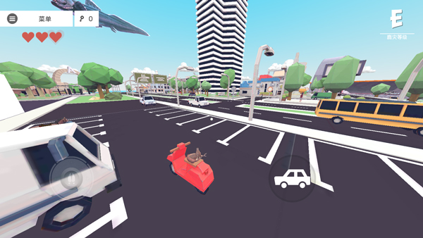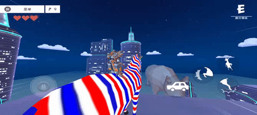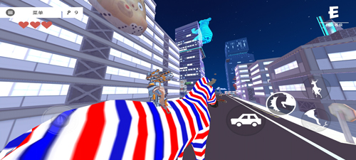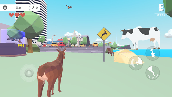 玩法简单又搞笑,像《模拟山羊》一样减压。玩家需要提升“鹿灾等级”解锁新武器和敌人,还能驾驶载具(如汽车、直升机)探索未来都市。破坏过程中要注意血量,被击倒就游戏结束。