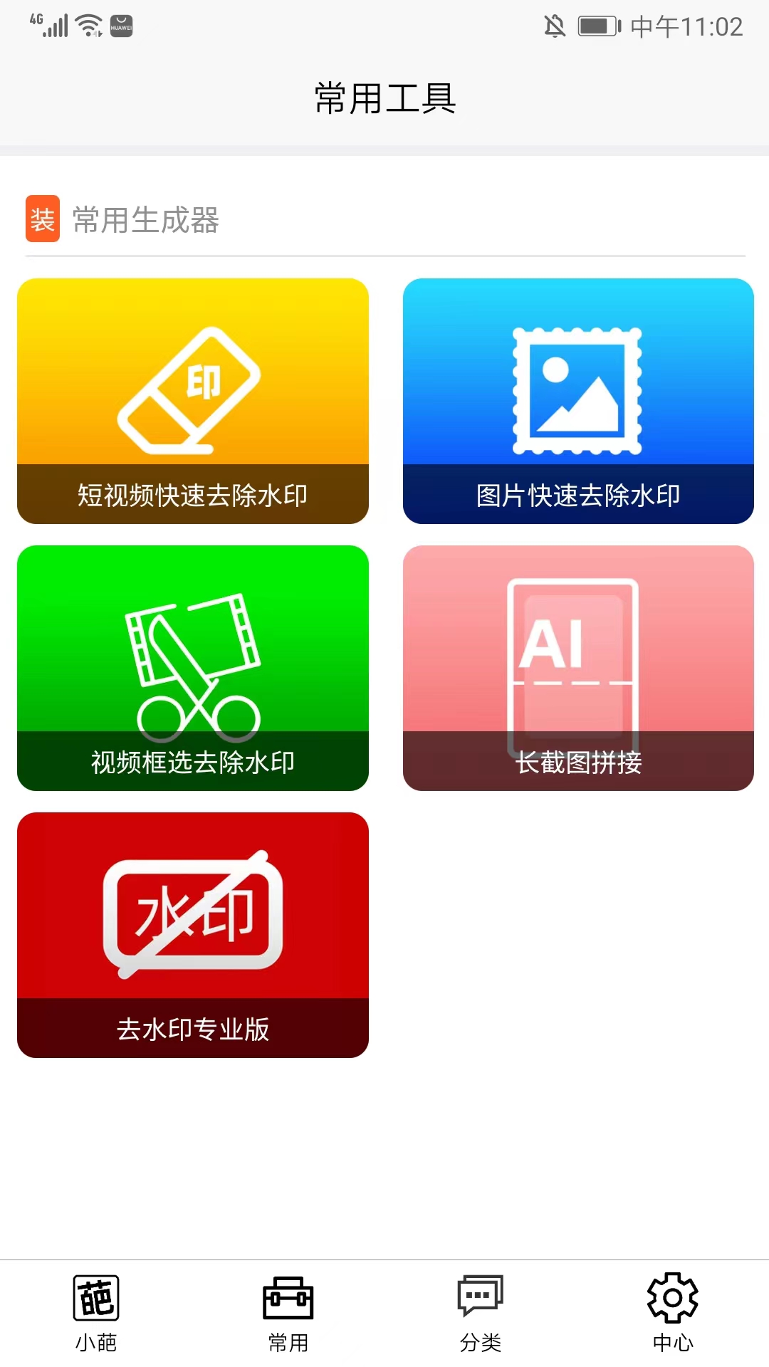 3、在【常用】界面,包括短视频去水印、图片去水印、长截图拼接等功能,