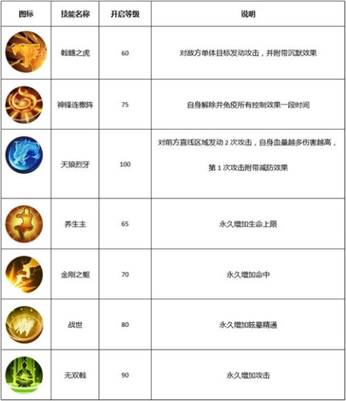 1、戟髓之虎:技能必须加满,单挑PK中此技能基本属于无敌技能,只要对方被沉默必死无疑,游戏里技能输出在PK中是非常关键的,只要被沉默了只有挨打的份。