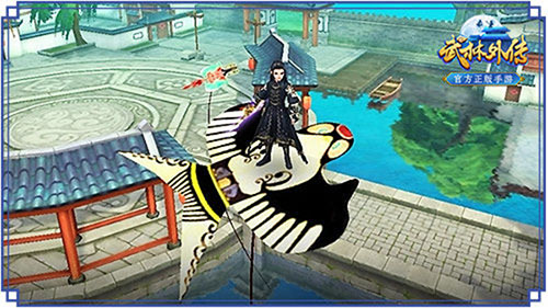 比如说,跳上同福客栈门前的旗杆,在地面直接跳跃时,利用一段轻功达不到杆子的高度,所以只能连续使用三段轻功。然后观察好方向,选择旗杆周围某一固定的点为参照物,保证这个点、旗杆、自己的视角在同一直线。最后测试好三段轻功达到最佳点时所跳跃的距离,那么下几次跳跃肯定会成功。