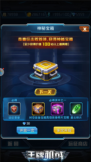 3、消灭BOSS后即可进入下一层继续挑战!越是深入噩梦远征,越是可以获得更珍贵的道具、钻石、星云碎片、和大量远征荣誉!