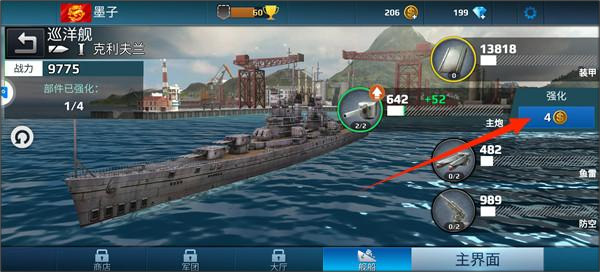 3、在开始战斗前,先将战舰进行强大以提升战斗力,这点对取胜至关重要