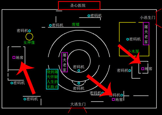 圣心医院地窖分布位置附近都有墙壁可以作为掩体,地图位置主要分布在中心建筑物圣心医院的外围,小伙们可以绕着医院外围去寻找记忆这些地窖位置。