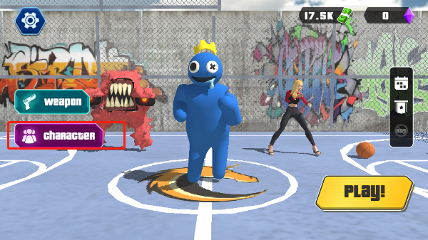 1、初次进入游戏,可点击下图所示位置切换各种角色