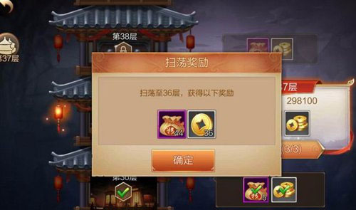 斗神演武每层都可以获得宠物口粮和刀币的奖励,另外,玩家还可以通过斗神演武的扫荡功能,来一键领取之前所有的通关奖励,但每天只能领取一次。