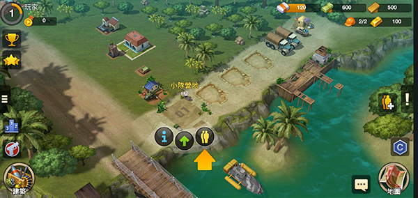 1、进入到游戏中之后,第一步我们需要建造一个守望塔达到防御领地的效果;