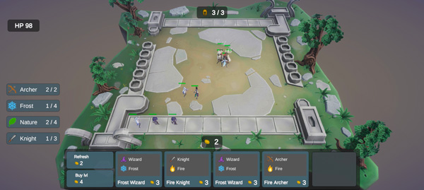 4、然后通过连胜来获得金币利息,来提示等级,购买更高等级的角色;