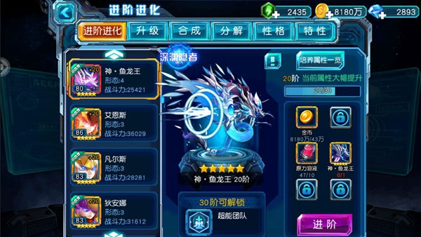 进阶到20阶之后,便可以进化到第四形态了。然而想进阶21~30阶的材料也比以前更严格更多了。