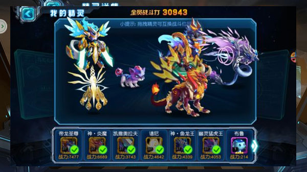 目前,这个游戏里的最强阵容莫过于下图这样的组合了,阵容中有:帝龙圣尊、神·炎魔、神·鱼龙王、谱尼、幽冥猛虎王和凯撒奥拉夫。但是这些都是高(土)端(豪)玩家才能拥有的精灵,像教官这种平民玩家,想要凑齐还是需要花费很大精力的。