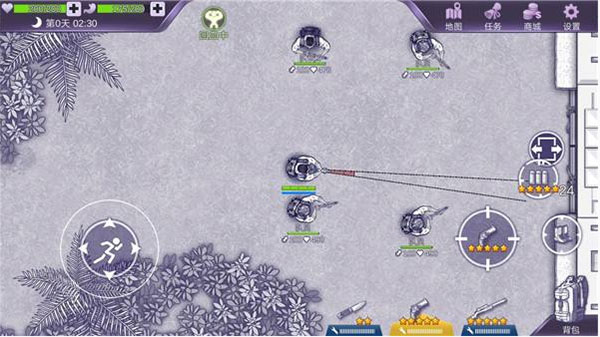 1、游戏采用俯视视角,副本无迷雾,一切地形与怪物尽收眼底,是迎难而上,还是避其锋芒都由您来决定;双轮盘操作,可一边移动一边射击,武器蓄力时,亦能利用走位躲掉怪物和丧尸的攻击。