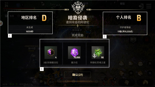 游戏结束后,进入活动结算界面,在这里可以查看自己的地区排名、个人排名及奖励。