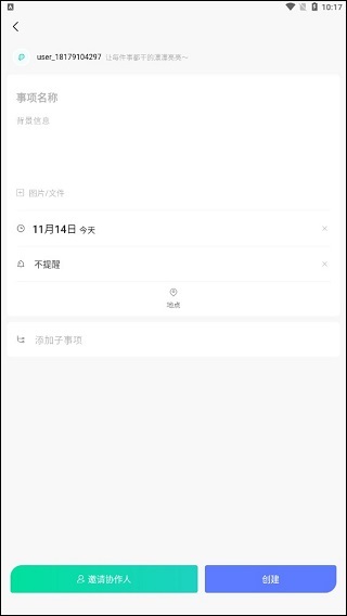 3、填写完事项信息,点击左下角的“邀请协作人”,会进入邀请协作人的流程。