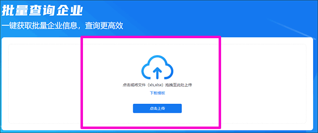 2、在批量查询界面把Excel表格拖入红色方框内即可进行上传;