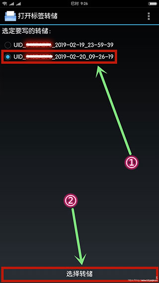 ⑨、勾选刚刚保存的标签,选择后点击软件最下方“选择转储”进行下一步操作(须注意的是,此时需将CUID空白卡至于手机NFC感应区);