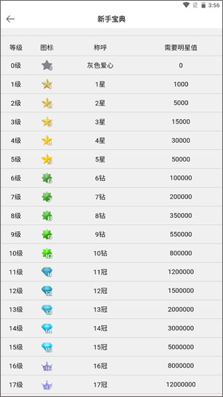 明星等级是根据主播所获得的明星值来判定,明星值根据收礼、房间抢座和点歌的秀币总值来计算(1秀币=1明星值),由低至高共分为︰心级主播,钻石主播,皇冠主播。皇冠主播不设最高等级,可持续升级,不同级别主播可获取不同权限,如主播连续5日不开播,则减扣当前明星值的5%,直到明星值为0。具体说明如下: