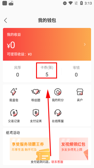 2、点击右侧更多下拉,“我的钱包”中可进入卡券包使用