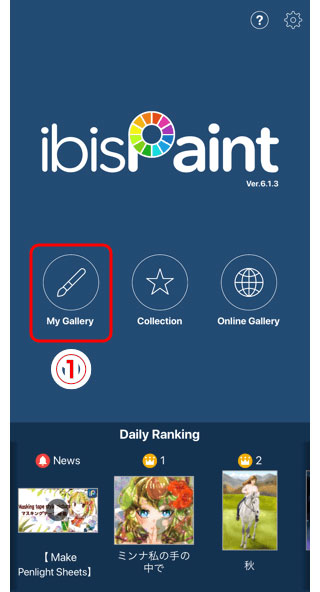 开始创建图稿1、标题屏幕如下图。这次试着制作你自己的艺术品。首先, 点击①我的画廊。