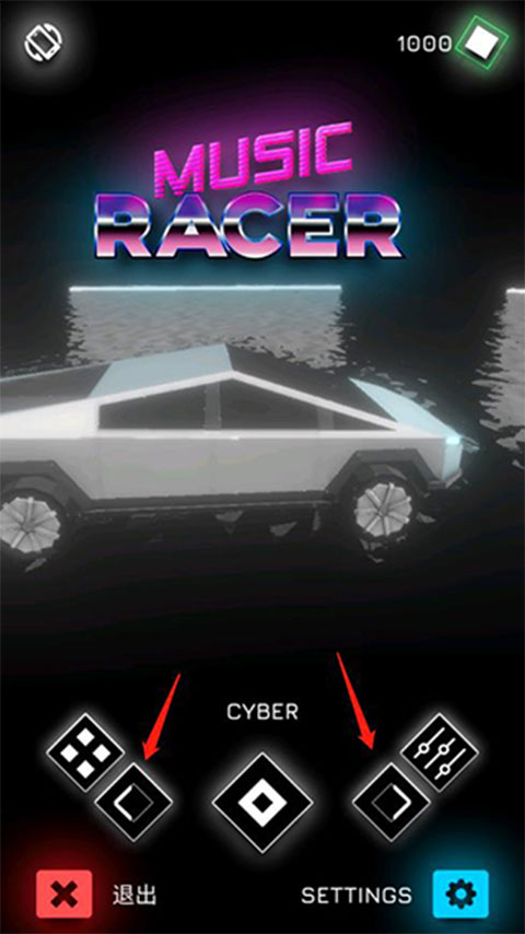 1、打开游戏后,点击如图所示的两个按键,可以选择自己喜欢的赛车;