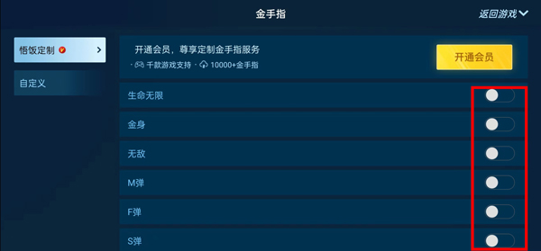 6、点击“金手指”后即可开始开启需要使用的选项;