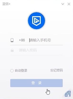 3、打开蓝信,在手机号中填入蓝信组织通讯录里的手机号即可。