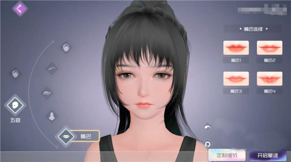 在整个编辑发型的过程当中,大家也可以直接通过滑动来观察不同角度的发型变化,这一点也有利于各位查看整体的美观度如何。调整完发型之后,各位就会开始针对脸部的细节进行设计。最开始是角色的嘴巴,预设好的嘴巴一共分为四款,不过各位也可以自由去调整整个嘴唇的厚度已经形状。
