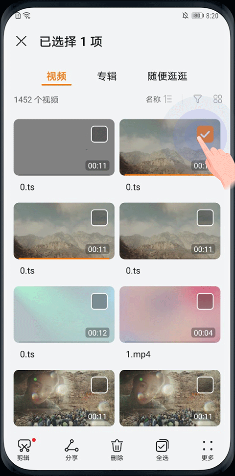2、进入本地视频后,选择视频、专辑下的内容播放。