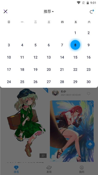 3、点击右上角的日历按钮还可以更改日期,方便查看每天的更新图片,