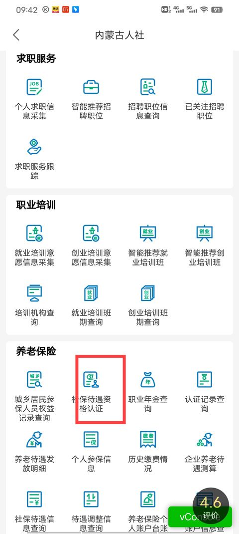 2、经过人脸识别后,进入人社专区后,在养老保险栏目中选择社保待遇资格认证;