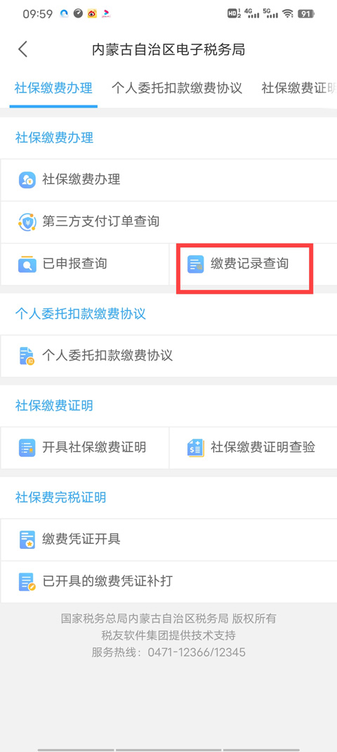 3、在社保缴费办理中,我们选择缴费记录查询;