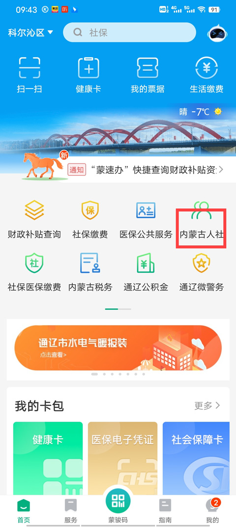 1、实名认证登录蒙速办app之后,在首页中点击蒙古人社;