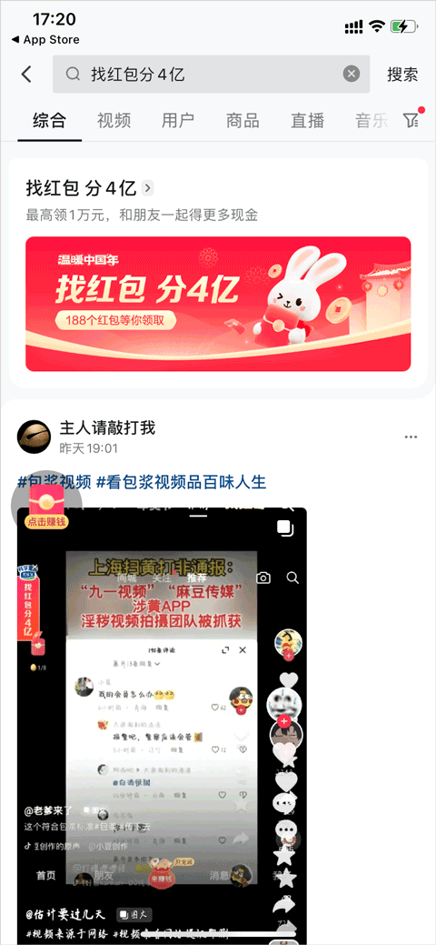 1、打开抖音极速版搜索“找红包,分4亿”活动,入口立马出来!希望我的好朋友们都能完成任务,得到一万元。