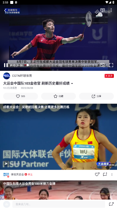 2、体育资讯,尽在掌握。央视体育专业的记者团队是我们最坚实的后盾,在这里您能了解翔实、权威的体育资讯,还能看到运动员场内场外独家精彩花絮。关注央视体育客户端,一手资讯尽在掌握。