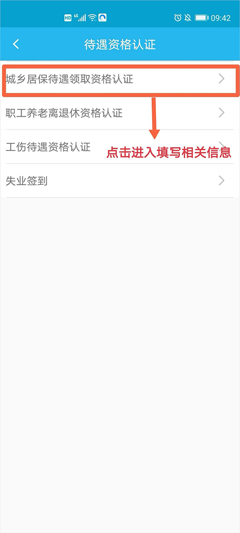 2、进入待遇资格认证页面,点击进入填写相关信息。