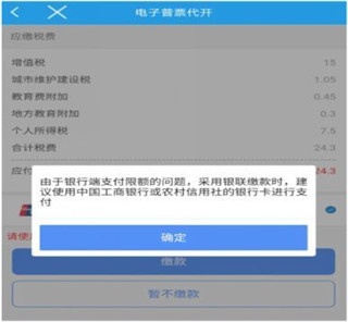 如果是无需缴款的发票,系统会弹出如下提示信息,点击【确定】按钮后进入完成页面。