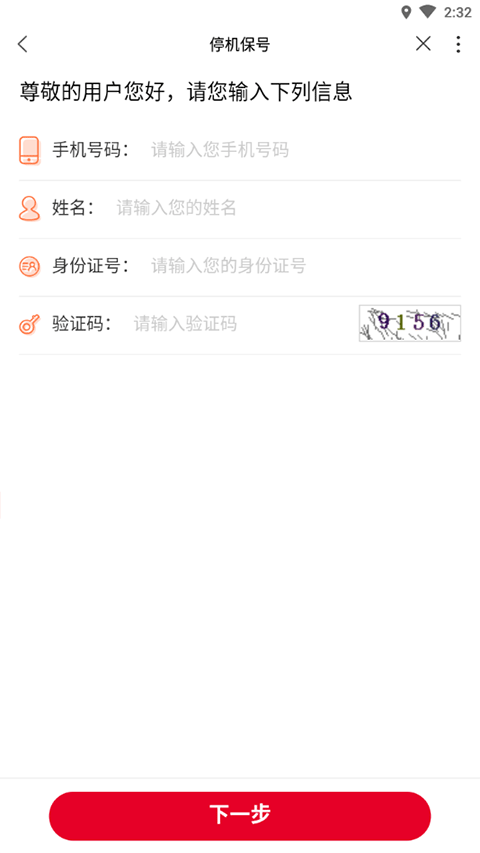 2、点击【停机保号】,根据页面提示输入个人信息即可
